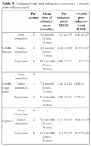 Table 9. Enhancement and refractive outcomes 1 month post-enhancement.