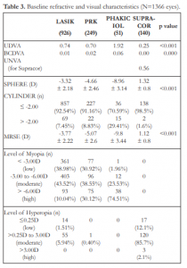 Table 3. Baseline refractive and visual characteristics (N=1366 eyes).