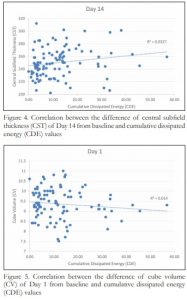 Figure 4. Correlation between the difference of central sub eld thickness (CST) of Day 14 from baseline and cumulative dissipated energy (CDE) values