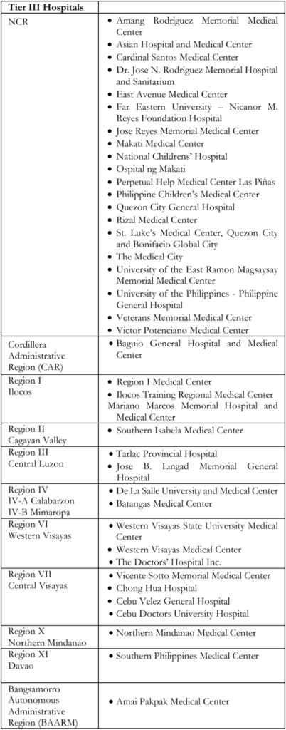 7. List of Accredited Health Facilities; Level 3 hospitals – Updated September 2021. https://www.philhealth.gov.ph (accessed October 10, 2021).
