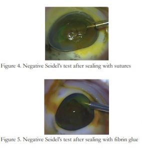 In the control group, the corneal incisions were closed using two partial thickness simple interrupted sutures with Nylon 10-0 suture (Ethilon, Alcon Laboratories, USA). Seidel’s testing and manipulation of IOP were done as previously described.