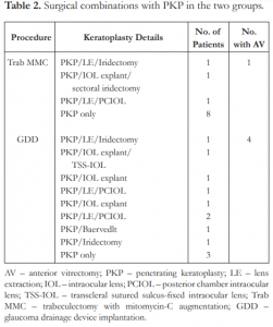 Corneal blindness is the 4th cause of blindness globally and penetrating keratoplasty (PKP) is one of the most commonly performed surgeries for corneal opacities. In the United States, it has become the most frequently performed method of transplantation.1,2 There are many complications that can occur following PKP.3
