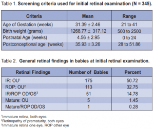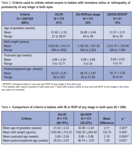 and those with ROP of any stage in both eyes (Table 4). Among the 113 babies who were found to have ROP,