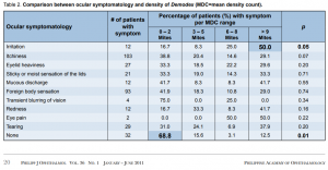 Table 3. Comparison between clinical findings and density of Demodex. *MDC = mean density count