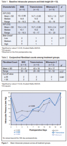 contralateral eye, and bleb height at postoperative day 1 are summarized in Table 1. Baseline IOP and bleb height at postoperative day 1 were homogeneous between treatment groups.
