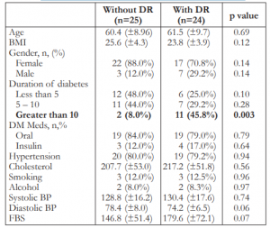 of diabetic retinopathy (Table 3).