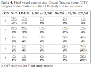 14. Kuhn F, Maisiak R, Mann L, et al. The Ocular Trauma Score (OTS). Ophthalmol Clin N Am 2002;15:163-165.