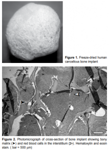 7 Cortical and cancellous bones may be used as allografts. Cancellous bone is ideal as defect filler. Its porosity provides a scaffold for fibrovascular ingrowth. Taking these characteristics of freeze-dried human bone into consideration, this study determined whether freeze-dried human bone can be used as an orbital implant. Its biocompatibility, integration to host tissues, presence of fibrovascular ingrowth, and adverse effects were assessed.