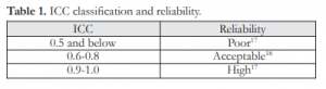 Table 1. ICC classification and reliability.