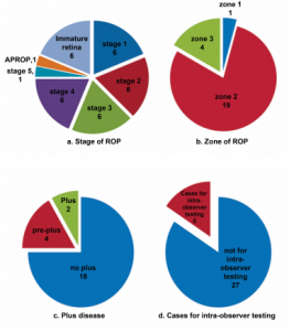 Outcome measures included: (1) presence or absence of variability of ROP diagnosis among participants, (2) over-all inter-observer reliability, (3) intra-observer reliability, and (3) subspecialty inter- observer reliability (between retina specialists and pediatric ophthalmologists). Reliability was evaluated at 3 levels: stage, zone, plus disease.