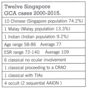 Table 1. Details of 12 biopsy-proven cases of GCA seen over a 15-year period in Singapore with racial population percentage in parenthesis.