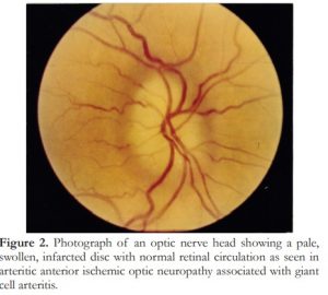 Apart from GCA, other even rarer causes of an AAION include systemic vasculitides such as systemic lupus erythematosus, periarteritis nodosa, and Takayasu’s disease.