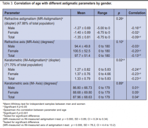 < 0.001; Table 3). 71.70% of the total population had astigmatism (Kdiff > 0.05D) with a mean of 1.33 ± 0.79D.