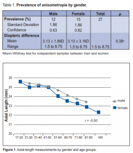 between each pair of anisometropic eyes (Table 1). Anisometropia was observed in 12% of males and 15% of